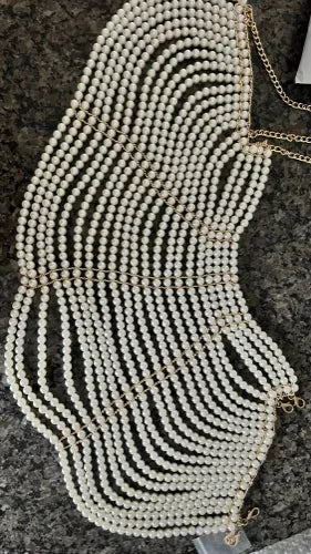 This unique pearl body chain transforms any outfit into a style statement. Ideal for nightclubs, theme parties, or a chic day at the beach. Its adjustable fit suits most body types comfortably. Crafted from high-quality pearls and metal, this accessory promises durability. Add a touch of elegance and shine that lasts for years.